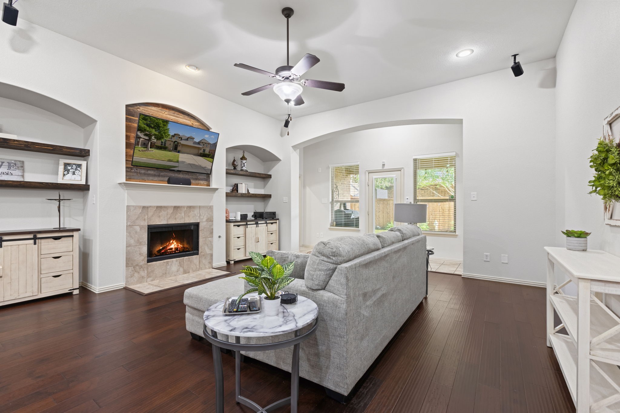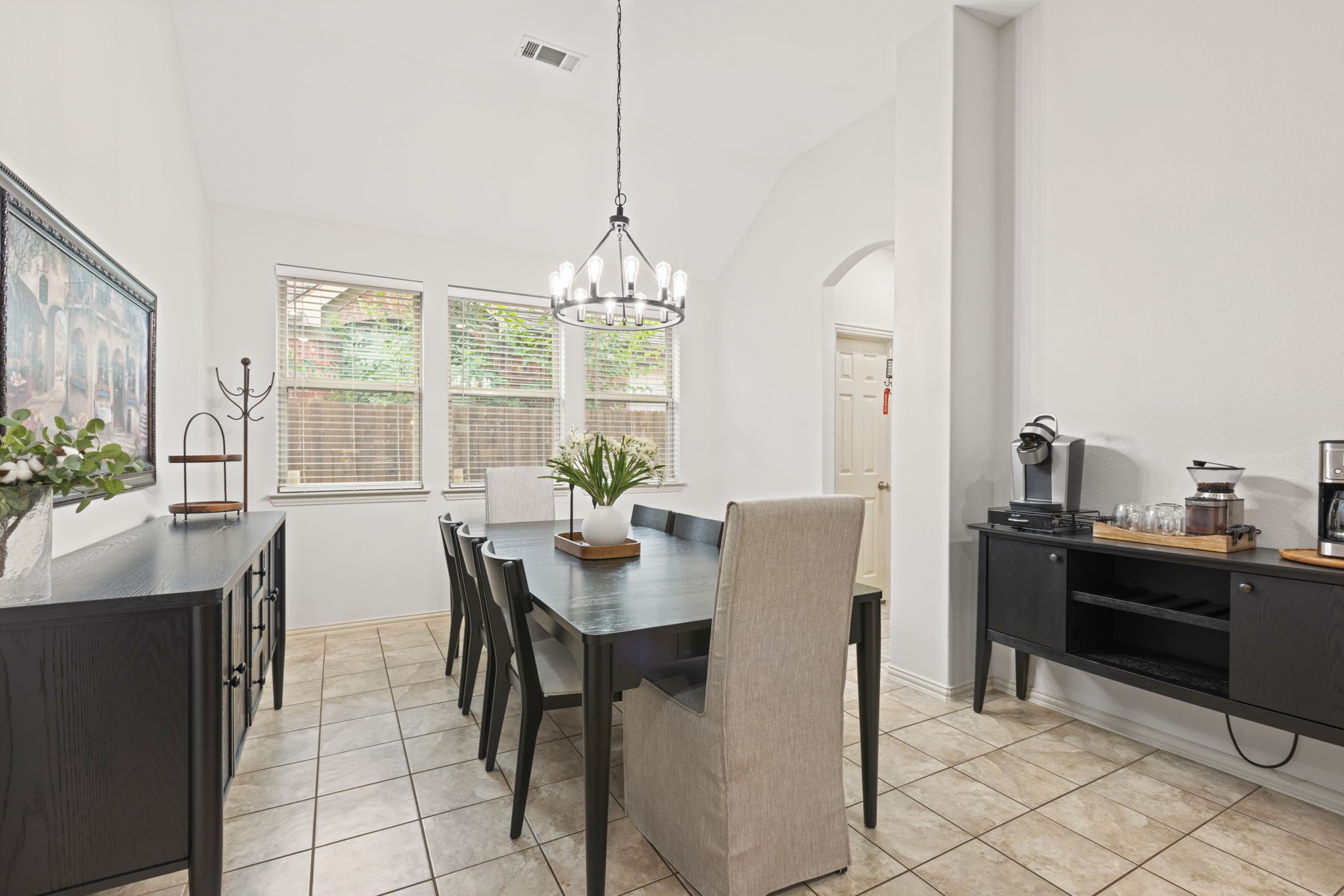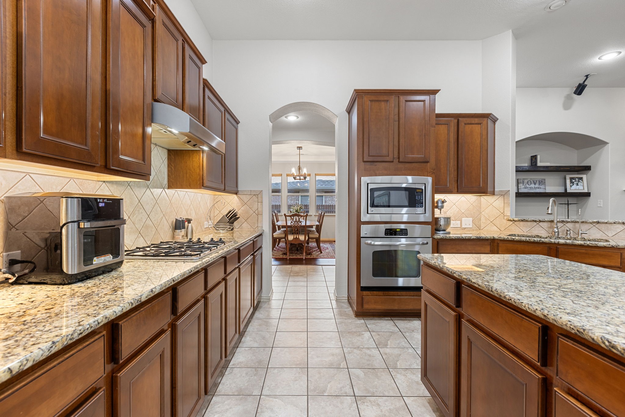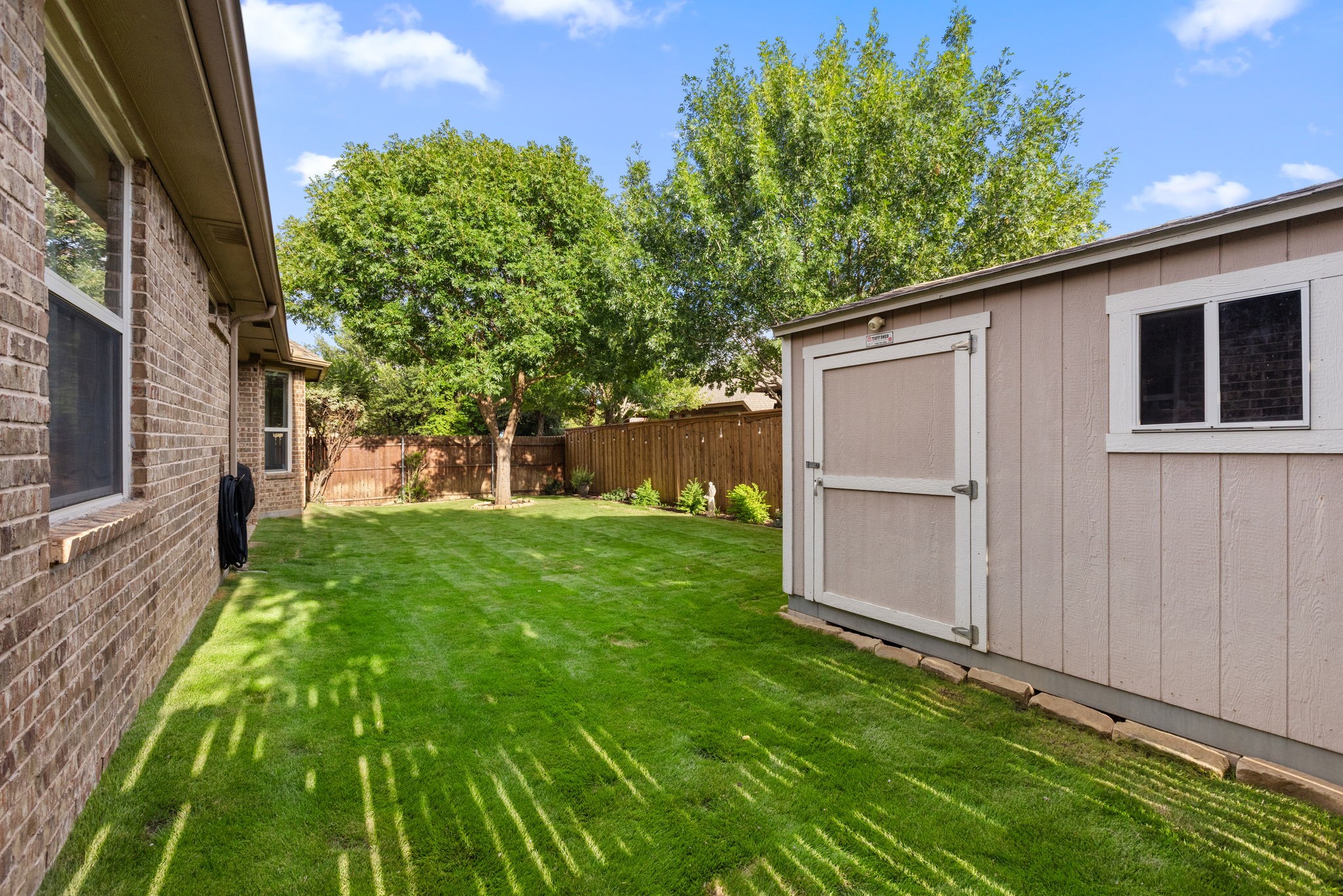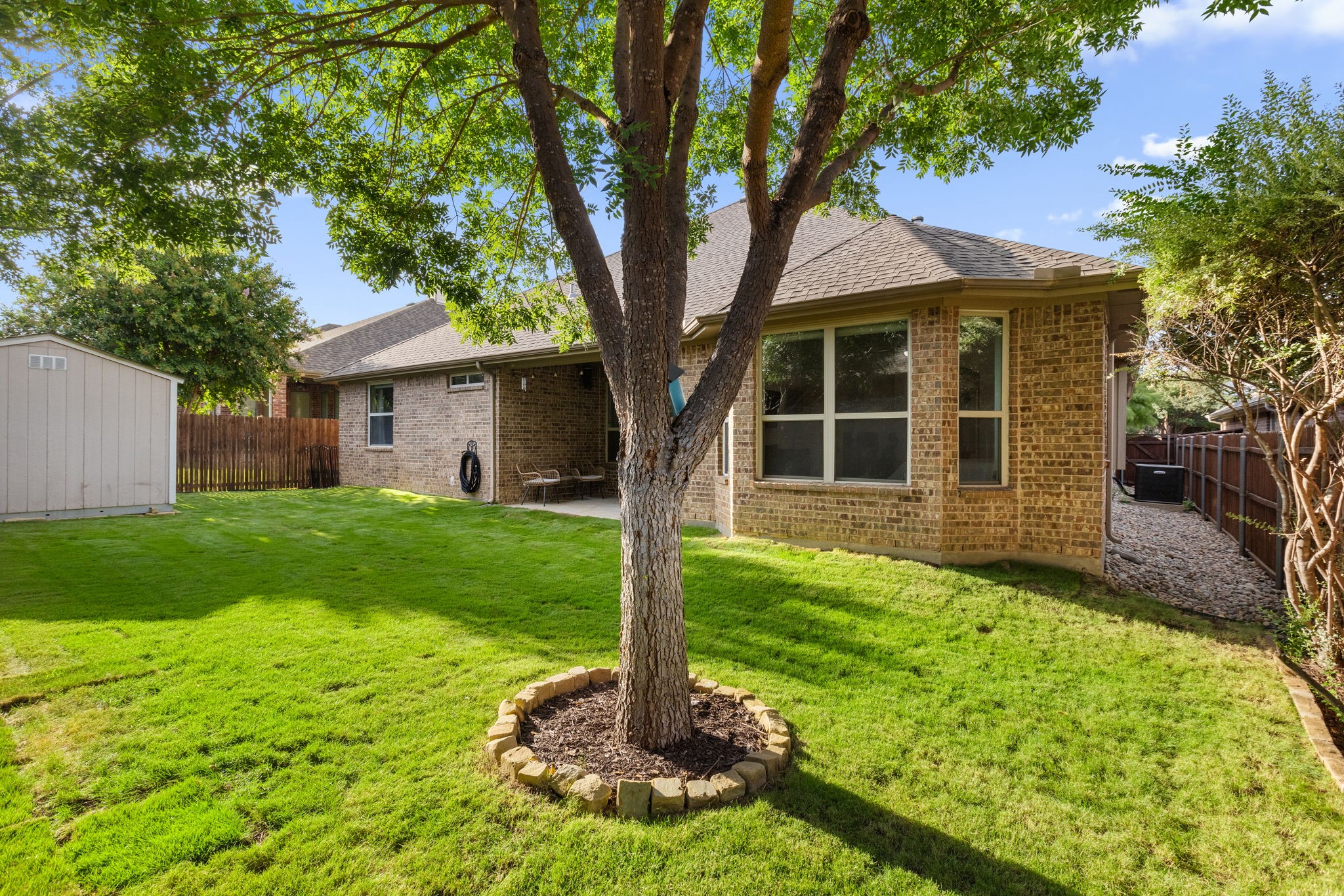 Welcome to this oversized single-story home in the sought-after Saratoga community. Designed with an open-concept layout, high ceilings, and abundant natural light, this home offers the perfect blend of comfort and style. At the heart of the home is a chef's kitchen featuring granite countertops, an abundance of cabinet space, a large island, stainless steel appliances, and an inviting eat-in area. Just off the kitchen, you'll find a formal dining room, ideal for hosting gatherings. The spacious living room flows seamlessly from the kitchen, offering backyard views and plenty of room for entertaining. The master suite is truly impressive, with a massive bedroom and a spa-like bathroom complete with dual sinks, a soaking tub, separate shower, and a large walk-in closet. Secondary bedrooms are generously sized with ample closet space, making them perfect for family, guests, or a home office. Convenience is key with a large utility room that includes built-in cabinetry, washer and dryer connections, and direct access to the garage. Step outside to your private backyard retreat featuring a covered patio, lush green space, and a storage shed--ideal for outdoor living and entertaining. Residents of Saratoga enjoy access to community amenities, including a sparkling pool and neighborhood park. This home combines space, function, and style--don't miss the opportunity to make it yours!