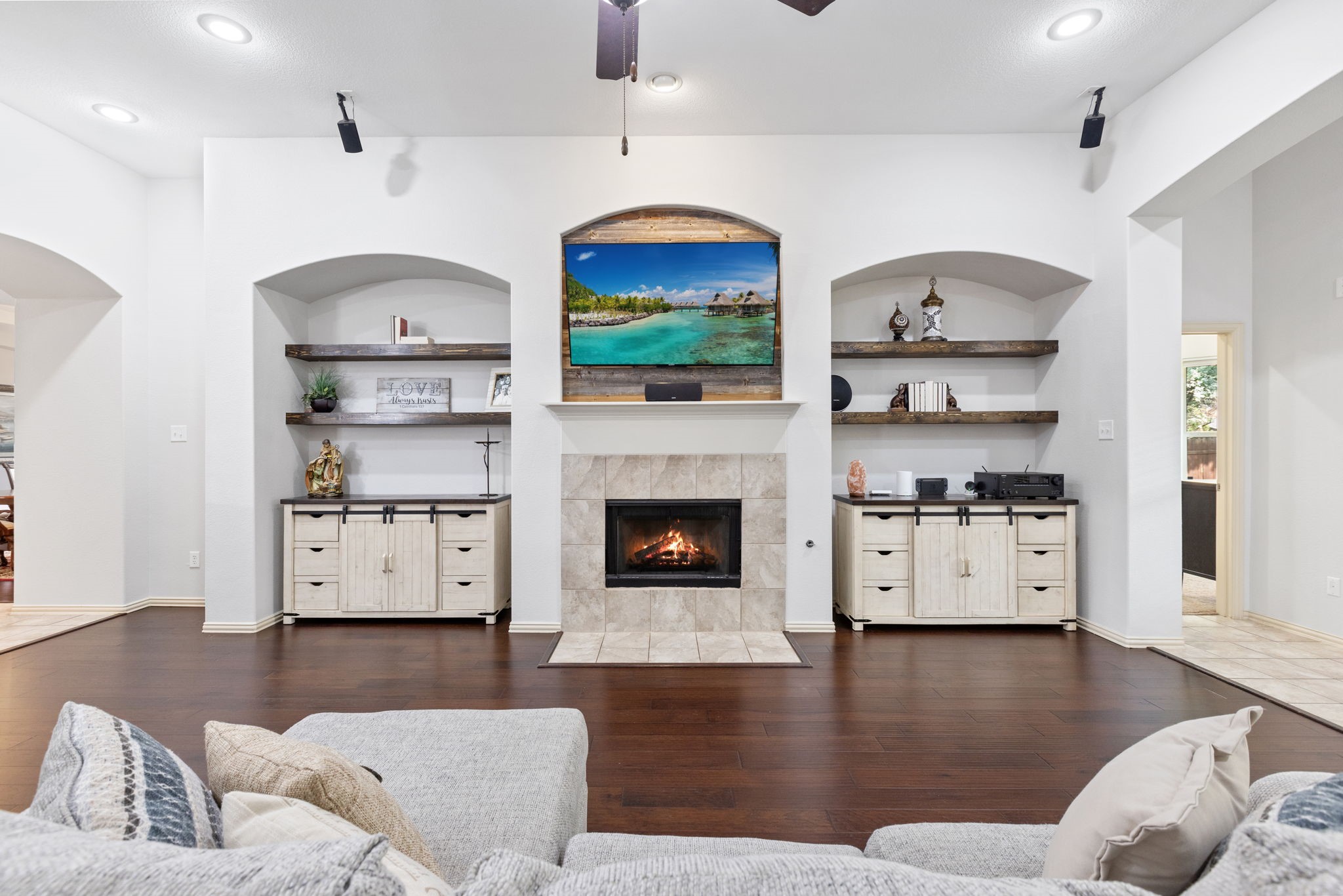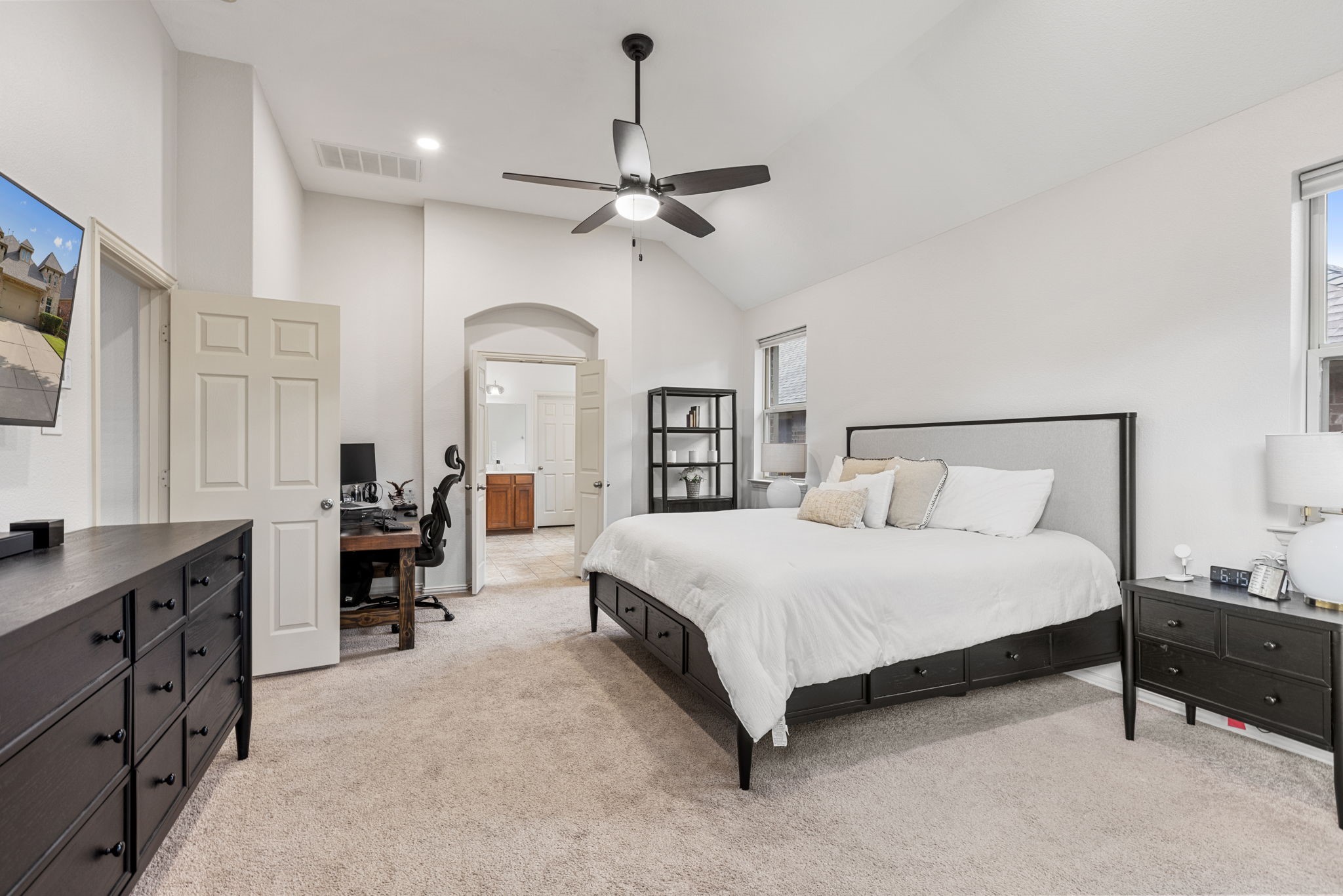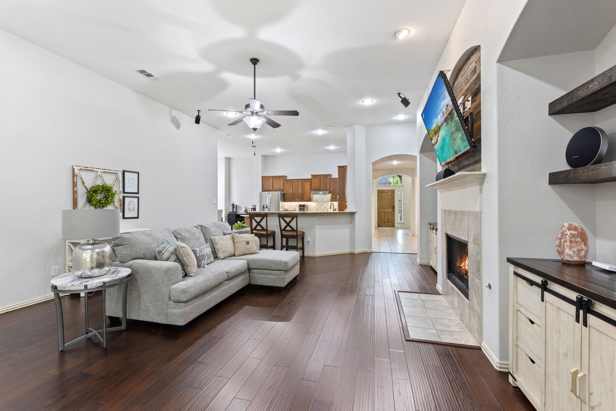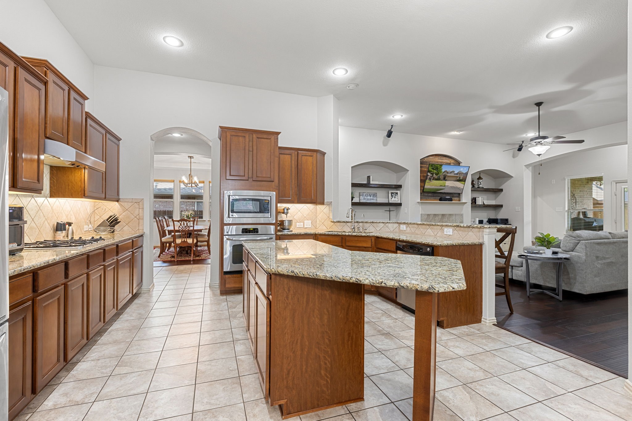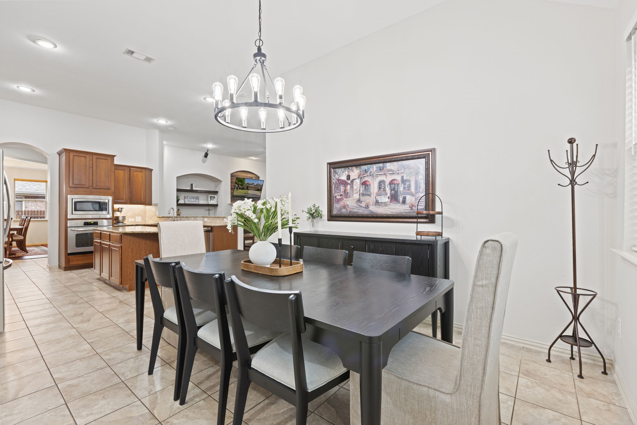 Welcome to this oversized single-story home in the sought-after Saratoga community. Designed with an open-concept layout, high ceilings, and abundant natural light, this home offers the perfect blend of comfort and style. At the heart of the home is a chef's kitchen featuring granite countertops, an abundance of cabinet space, a large island, stainless steel appliances, and an inviting eat-in area. Just off the kitchen, you'll find a formal dining room, ideal for hosting gatherings. The spacious living room flows seamlessly from the kitchen, offering backyard views and plenty of room for entertaining. The master suite is truly impressive, with a massive bedroom and a spa-like bathroom complete with dual sinks, a soaking tub, separate shower, and a large walk-in closet. Secondary bedrooms are generously sized with ample closet space, making them perfect for family, guests, or a home office. Convenience is key with a large utility room that includes built-in cabinetry, washer and dryer connections, and direct access to the garage. Step outside to your private backyard retreat featuring a covered patio, lush green space, and a storage shed--ideal for outdoor living and entertaining. Residents of Saratoga enjoy access to community amenities, including a sparkling pool and neighborhood park. This home combines space, function, and style--don't miss the opportunity to make it yours!